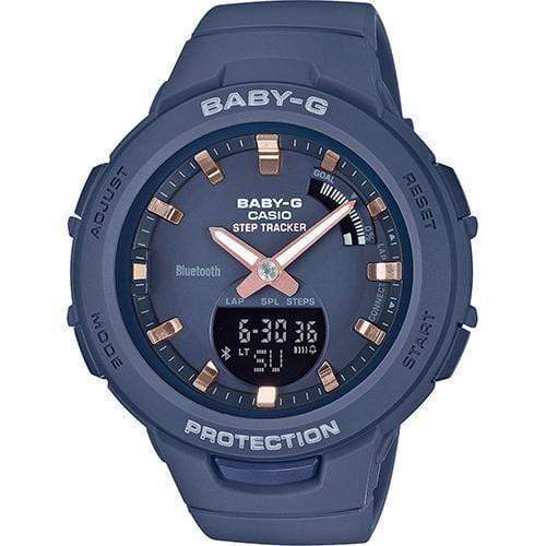 Casio Baby-G G-Squad BSA-B100-2ADR is a new addition in G-Squad sport watch series from the Baby-G lineup. It is designed to help you support your daily workout/training and features a thin construction so it does not create hindrance in exercises. The watch is made from high-standard materials and flaunts navy blue design which looks great on wrist. The stylish gadget is manufactured to uplift your daily health and fitness level with a number of useful features including 3-axis accelerometer, memory for up to 200 lap records, step reminder that alerts you when the pace is slow over a specific period.