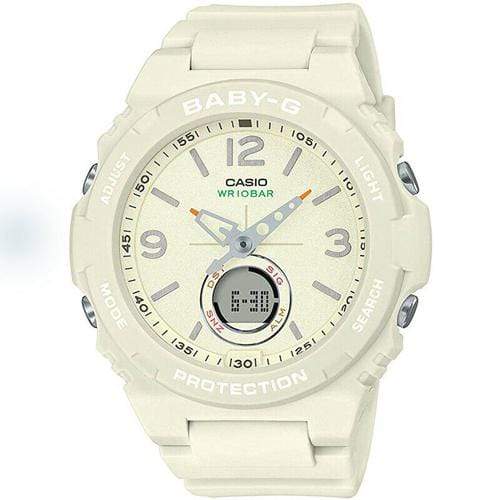 Casio Baby-G Watch BGA-260-7A boasts a very cool design and offers 100 meters water resistance and is perfect for sea/beach and swimming activities. The watch comes with Super Illuminator black light which causes face elements to glow for easy reading. Other specs of the watch are mineral glass dial, shock resistant construction, 30 seconds deviation per month, 1-second stopwatch, Countdown timer, 12/24h time format, auto calendar up to 2099, 5 daily alarms (with 1 snooze alarm) and 3 years battery life.