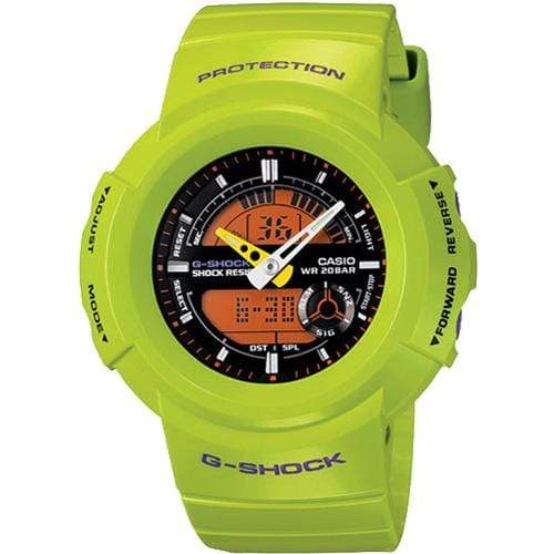 Casio G-Shock Watch AW-582SC-3A is a super stylish Analogue-Digital wrist watch of the Casio G-Shock series. This cool wearable gadget is 200-meter water resistant making it suitable for extreme outdoor conditions as well as water sports. Furthermore, its shock resistant construction makes it a sturdy gadget for outside wear.